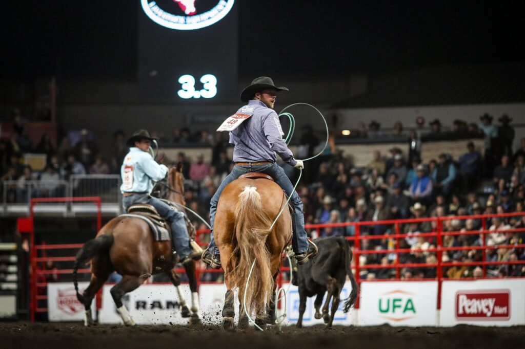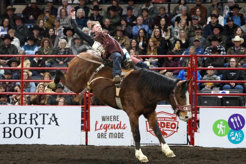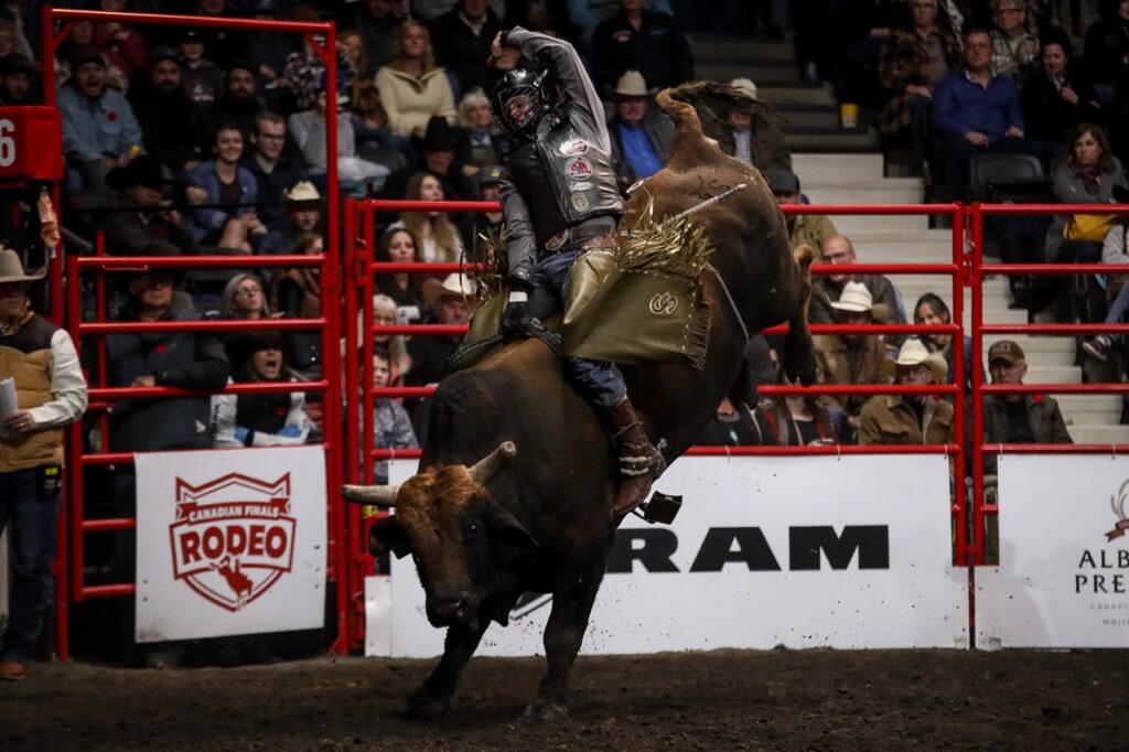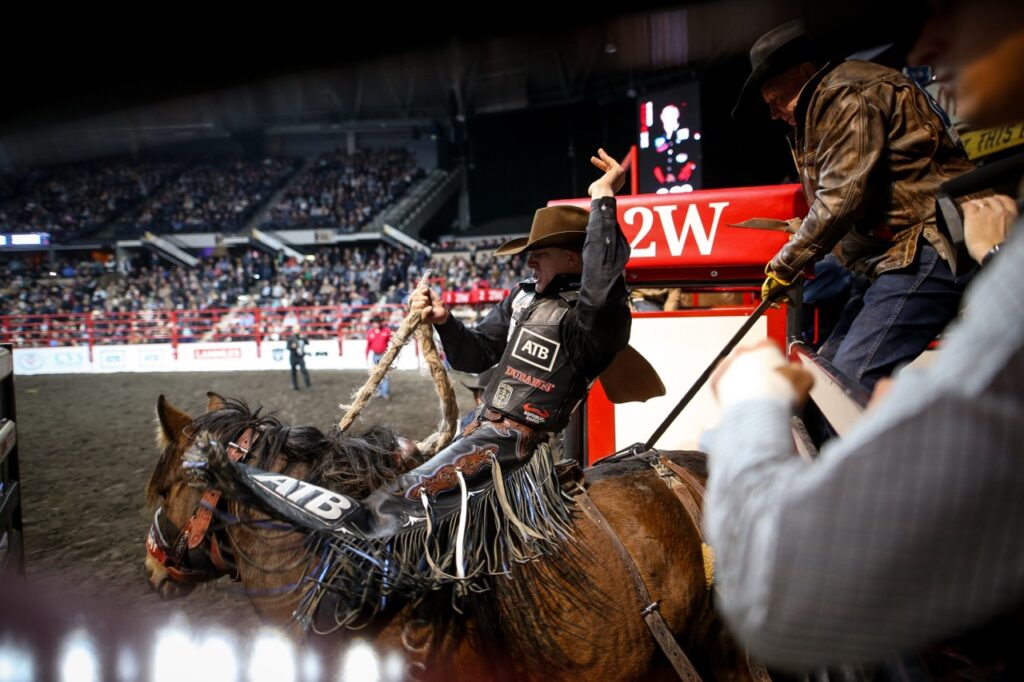 Often called the “Classic Event,” Saddle Bronc riding evolved directly from the ranch work of breaking wild horses. Unlike the raw power of bull riding, this event is a stylized dance of rhythm and balance. To score high, the rider must synchronize his movements with the bucking horse, spurring from the horse’s neck to the back of the saddle in a fluid, continuous motion—all while holding onto a single thick rein. It is an 8-second display of grace under pressure that demands perfect timing and grit.